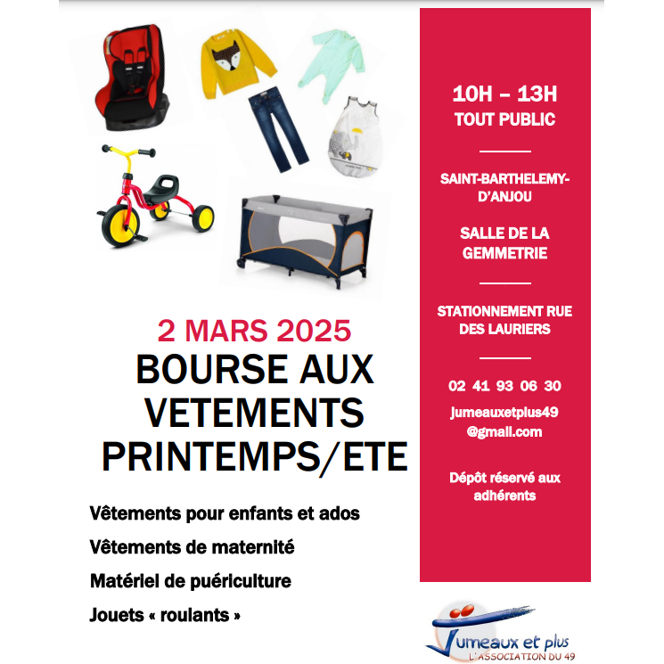 Vente de vêtements enfants et ados (jusqu'au l), vêtements de maternité, matériel de puériculture et jouets roulants.