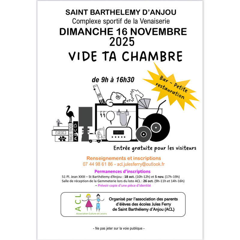 Traditionnel vide ta chambre organisé tous les ans par l'association des parents d'éleves des ecoles jules ferry à st barthélémy d'anjou, ouvert à tous!!