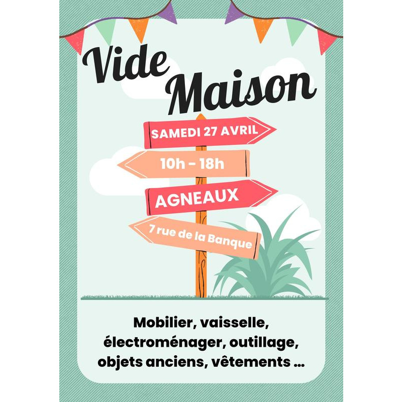 Vide maison : mobilier, vaisselle, électroménager, outillage, objets anciens, vêtements;