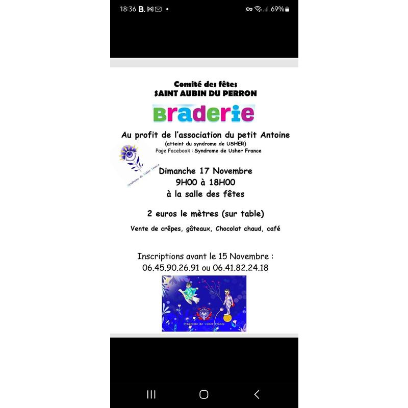 Braderie au profit de l association du petit antoine atteint du syndrome de usher