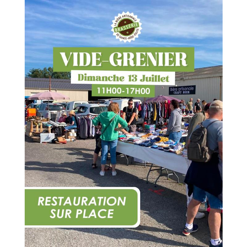 Ce dimanche 13 juillet, rendez-vous à la brasserie de sainte-mère-église pour un vide-grenier gratuit de 11h00 à 17h00 !