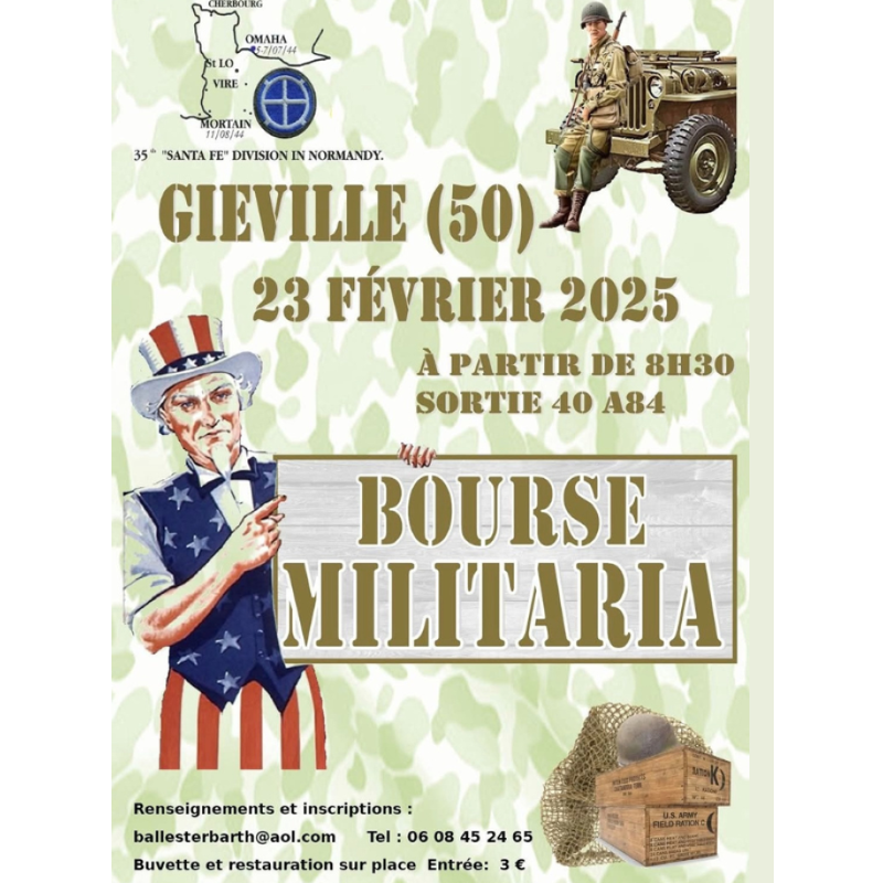 L'association 35th santé fé division in normandy, organise le 23 février prochaine une bourse militaria (objets de collections...).