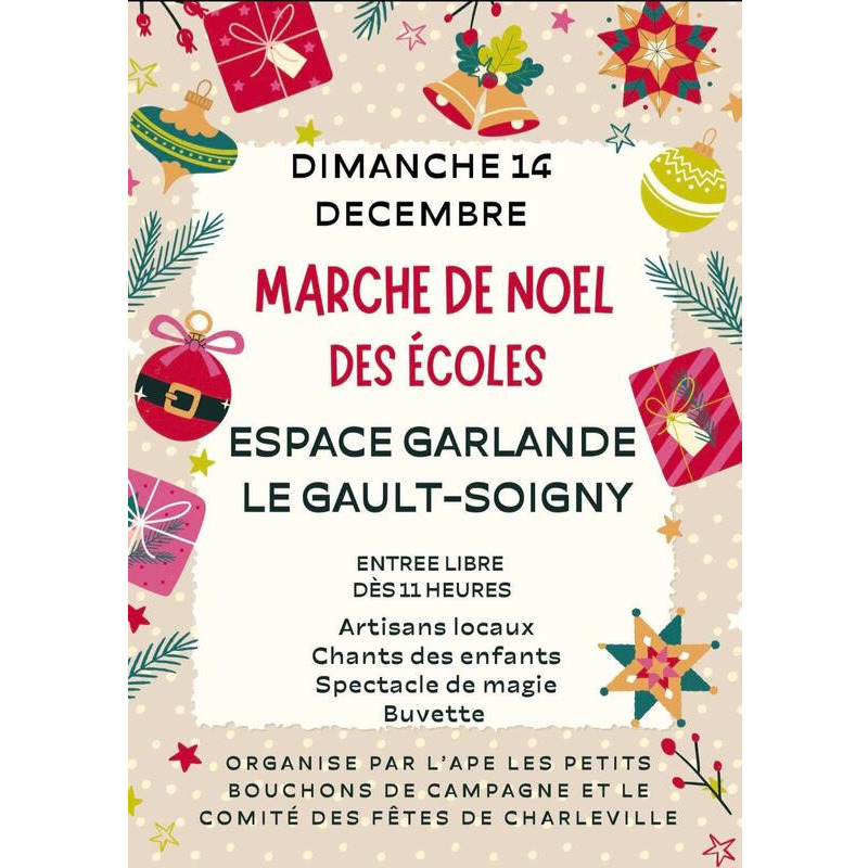 Marché de noël des écoles organisé par l'ape les petits bouchons de campagne et le comité des fêtes de charleville.
