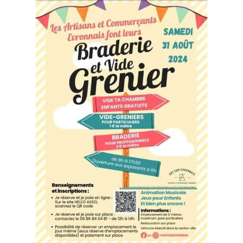 Comme tous les ans lors du festival de la viande une braderie et un vide-grenier aura lieu dans le centre-ville d'evron
