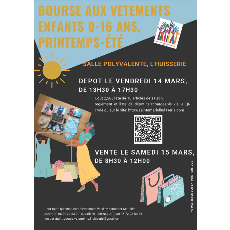 Bourse aux vêtements 0-16 ans & matériel de puériculture, organisée par l'apel ste marie de l'huisserie