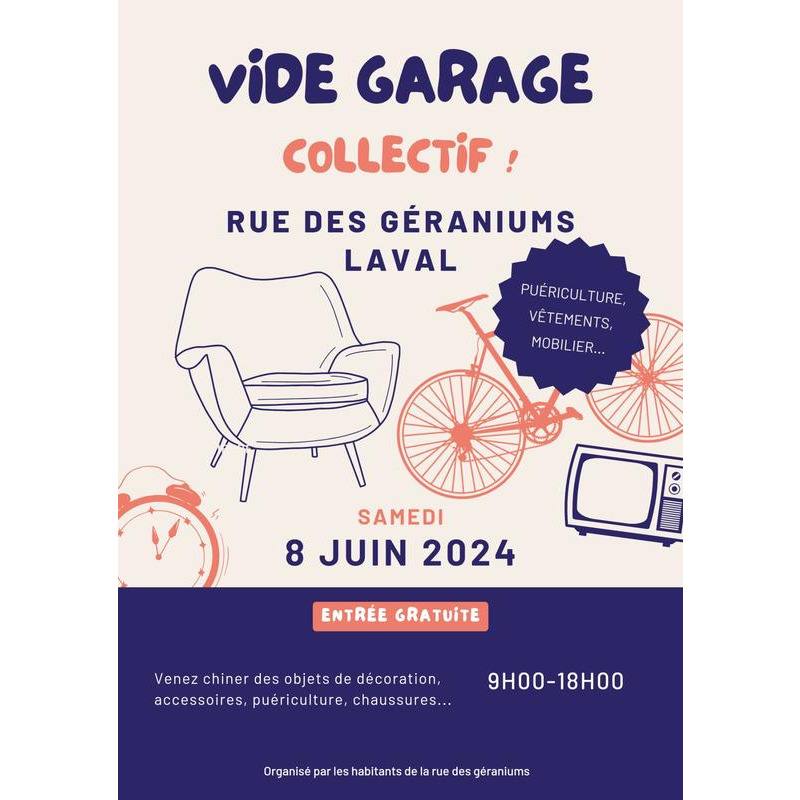 Des habitants de la rue des géraniums à laval organisent leur 1er vide garage et grenier collectif ! Venez chiner des objets de décoration, mobilier, vêtements, puériculture...