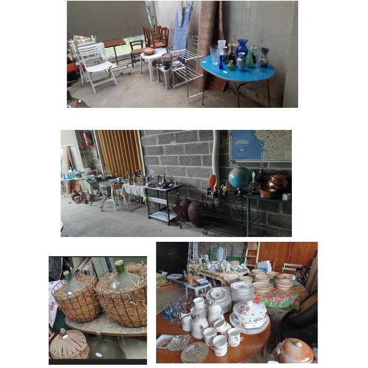 Vente suite décès ; ensemble de vaisselles, bibelots, appareils ménagers,objets anciens (dame jeanne, pots en grès lampes, étains....), appareils médical ( fauteuil roulant, rehausseur,fauteuil douche....),meubles (lits, fauteuils ,tables ...),