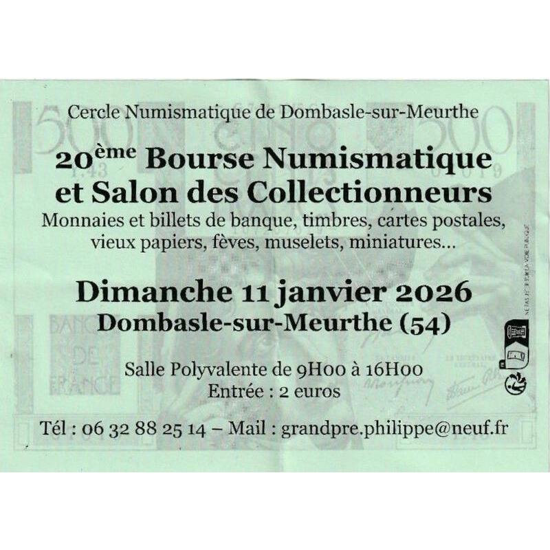 20ème bourse numismatique et salon des collectionneurs organisée par le cercle numismatique de dombasle sur meurthe.
