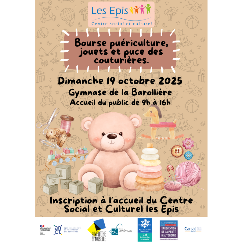 Bourse à la puériculture et puce des couturières et loisirs créatifs.
