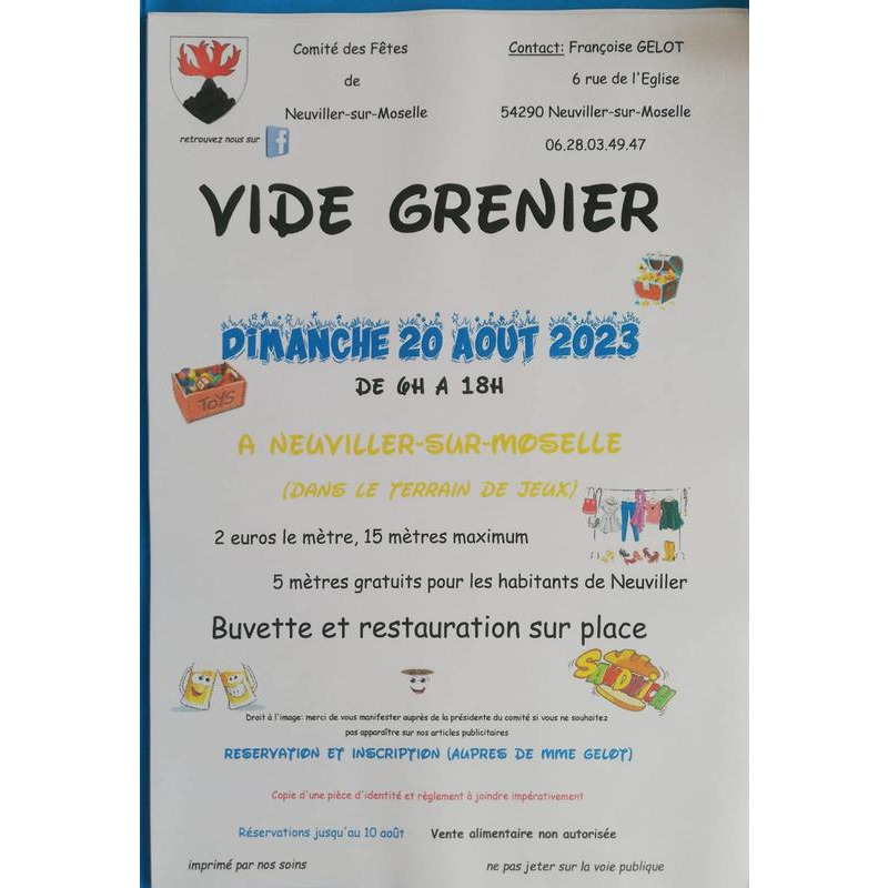 Vide grenier organisé par le comité des fêtes de neuviller sur moselle.