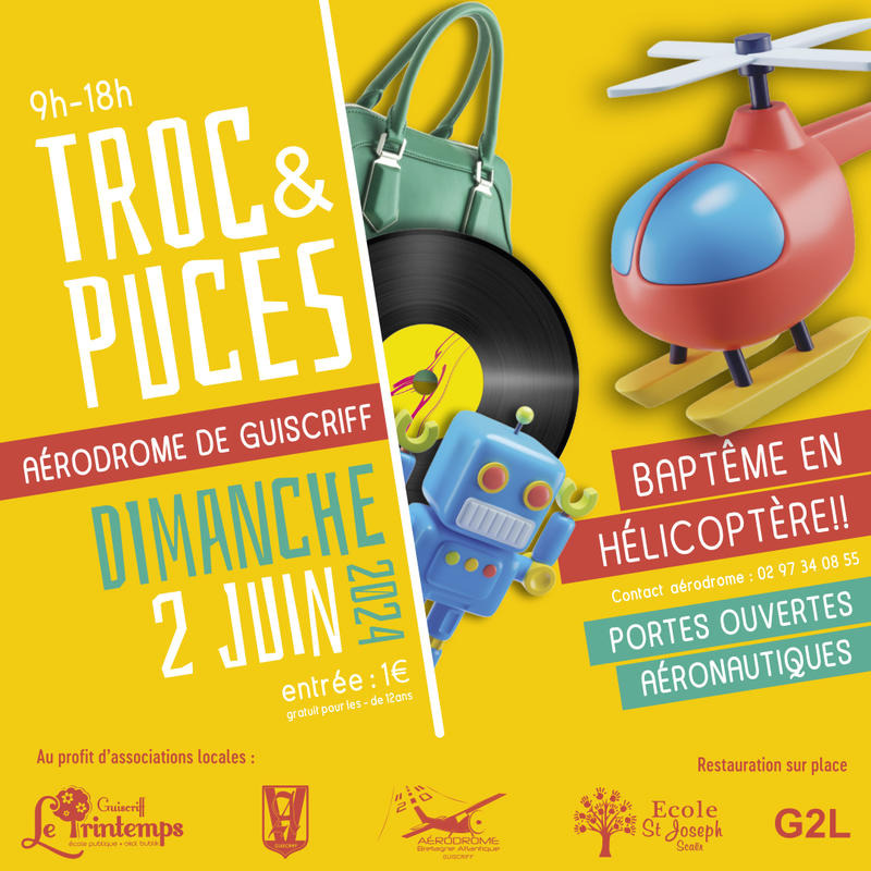Troc et puces : dimanche 02 juin 2024 à l'aérodrome bretagne atlantique de guiscriff.