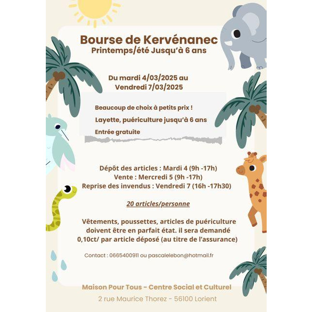 Bourse printemps - été : layette et puériculture jusqu’à 6 ans.