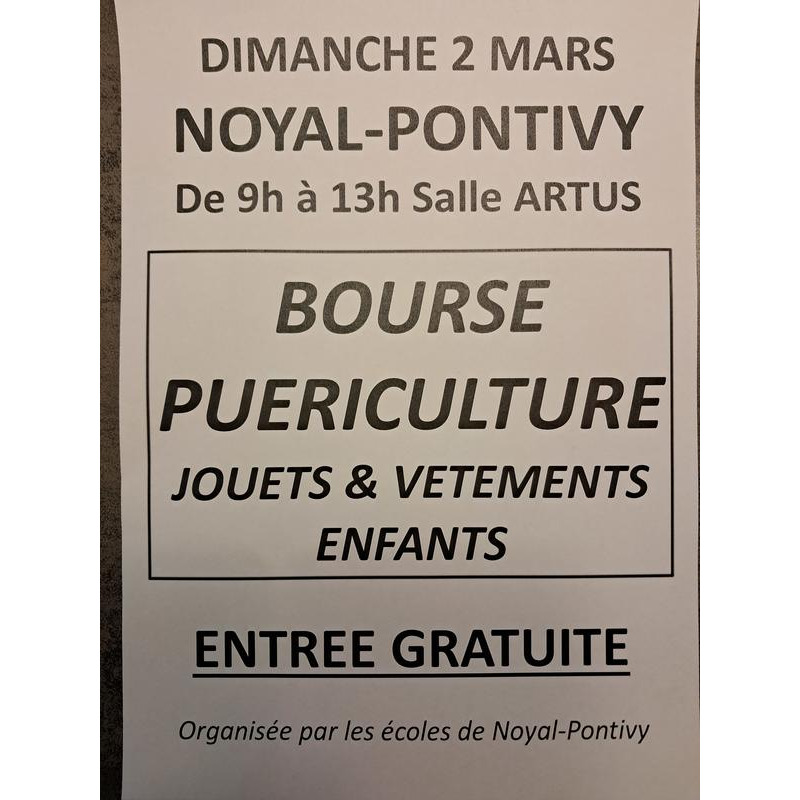 Les écoles françoise dolto et sainte noyale organisent une bourse puériculture, jouets et vêtements enfant le dimanche 2 mars de 9h à 13h à la salle des fêtes artus à noyal pontivy.