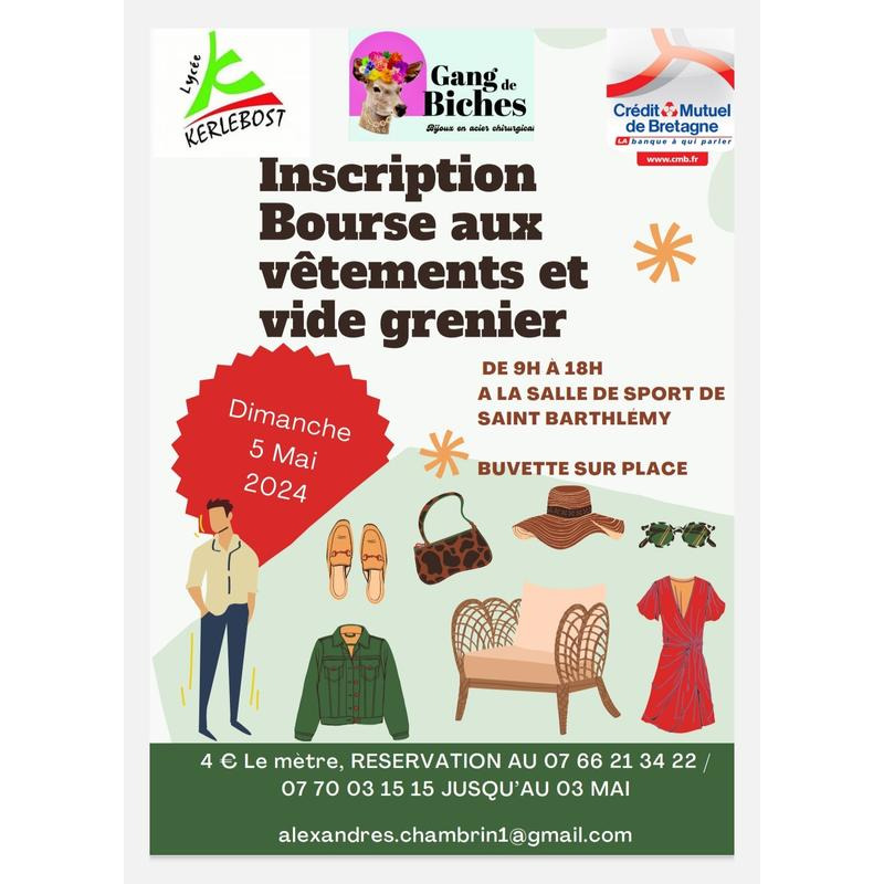 Vide grenier - bourse aux vêtements réalisé par des étudiants du lycée kerlebost dans la salle des sport de saint barthélémy.