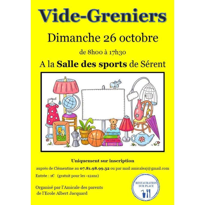 Le traditionnel vide-greniers de l'ecole albert jacquard s'agrandit ! Rendez-vous à la salle des sports de sérent pour faire de bonnes affaires.