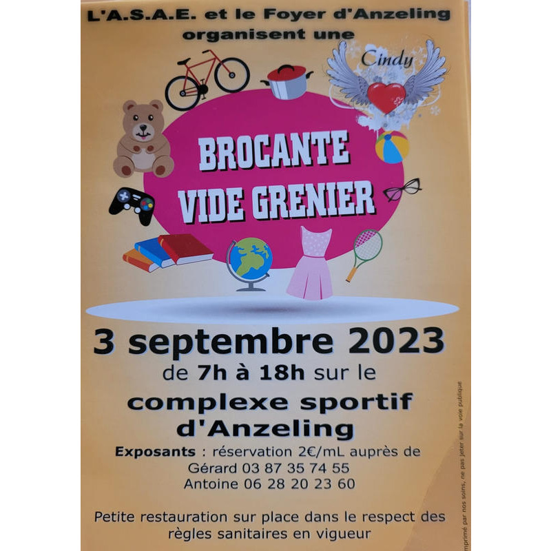 Le foyer d'anzeling et l'association sportive anzeling-edling organisent une brocante-vide grenier.