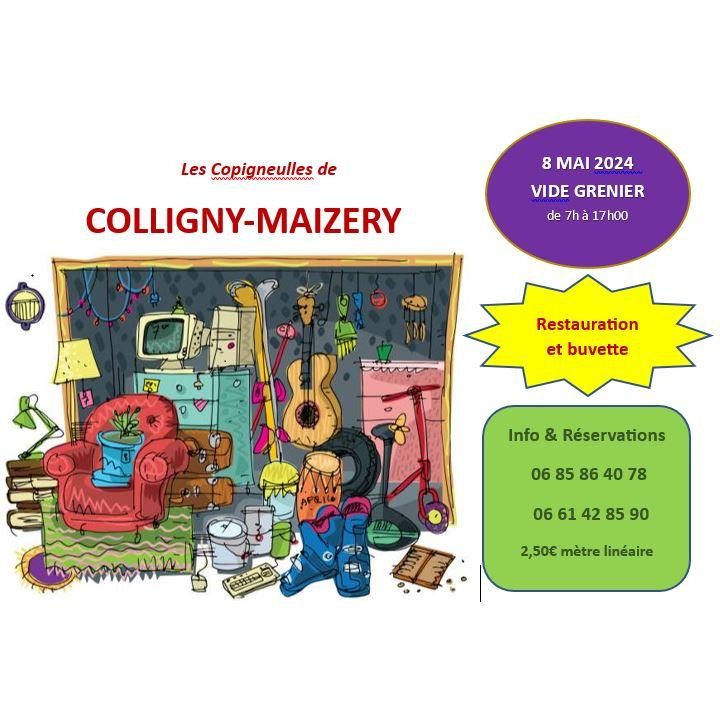 L'association "les copigneulles" organise sont traditionnel vide grenier du 8 mai - en extérieur - rue principale à colligny - de 7h à 17h - buvette , restauration et bonne humeur assurés - sous réservé d'une météo favorable -