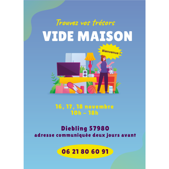 J'organise un vide maison dans la commune de diebling en moselle (57) le 16, 17 et 18 novembre 2024 (10h à 18h).