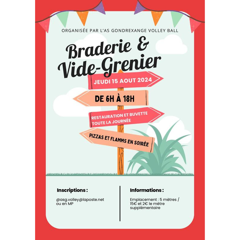 L'asg volley-ball organise sa traditionnelle foire d'été dans les rues du village, restauration buvette toute la journée, accès handicapé, toilettes.