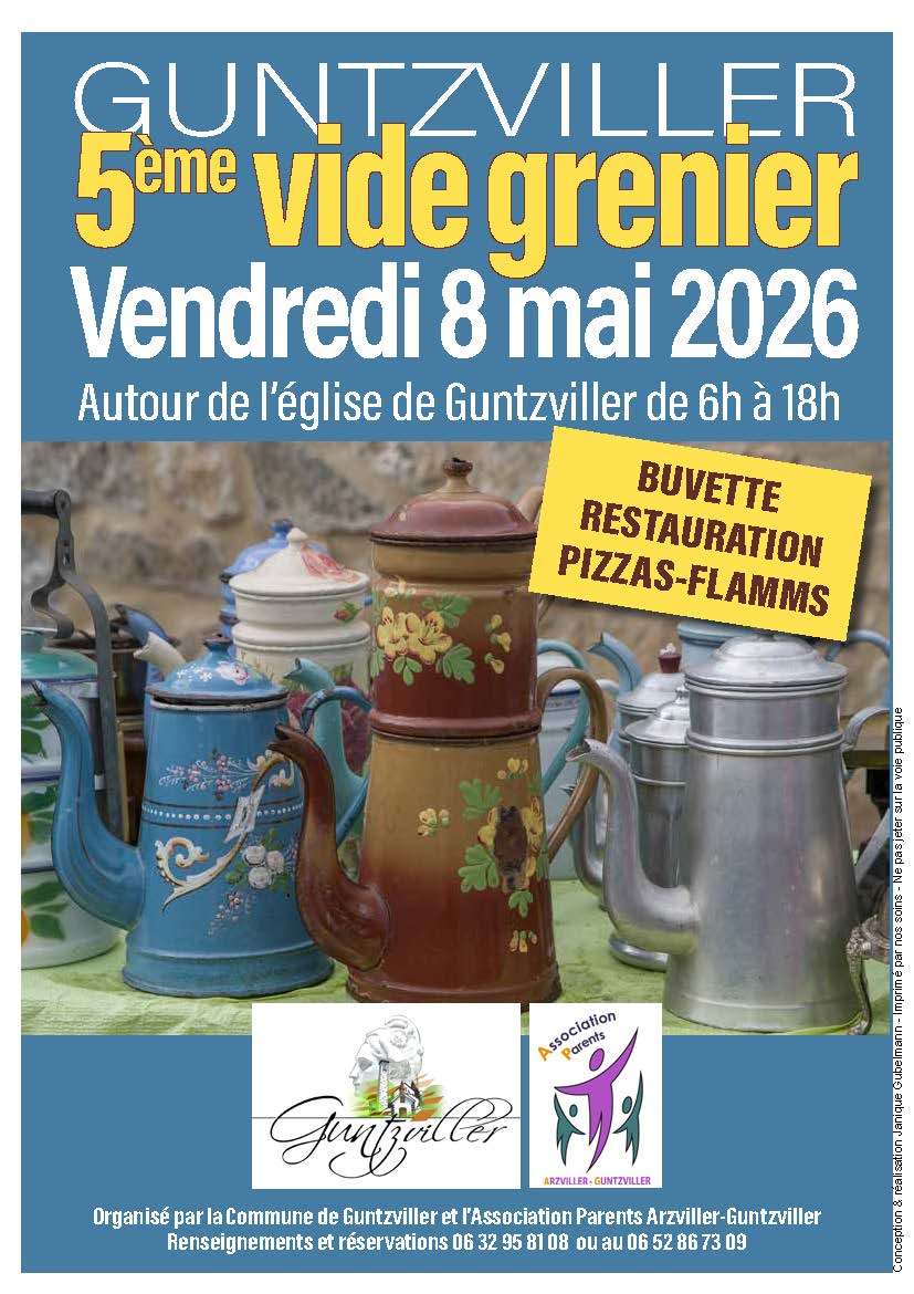 Rendez-vous jeudi 8 mai 2026 autour de l’église de Guntzviller pour une journée conviviale et pleine de bonnes affaires !
