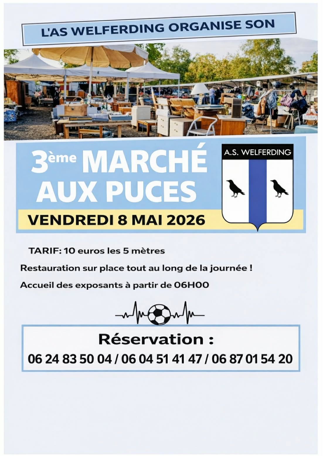 L'A.S Welferding organise son 3eme marché aux puces le vendredi 8 mai 2026.