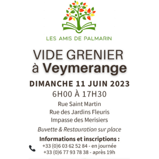Vide-grenier organisé par l'association "les amis de palmarins" dans les rues de veymerange : rue saint martin, rue des jardins fleuris, impasse des merisiers.