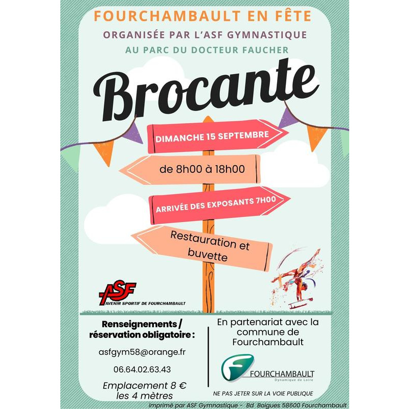 A cette occasion, l'asf gymnastique sera présente pour organiser la traditionnelle brocante du dimanche 15 septembre et proposer une buvette (restauration rapide et boissons).