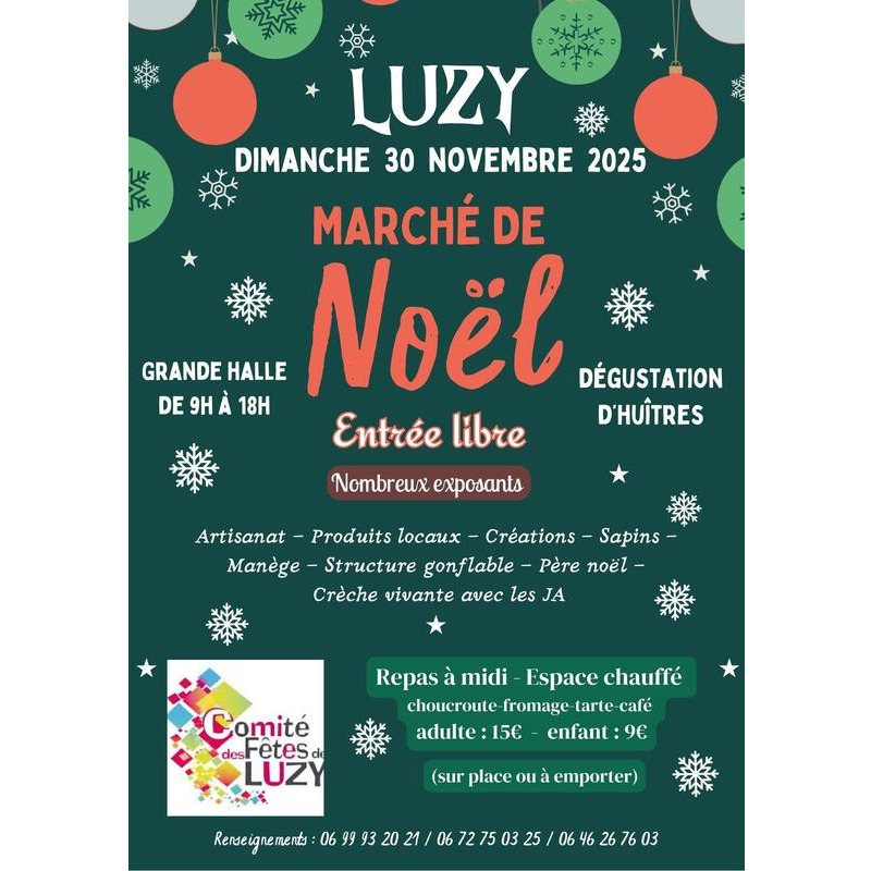 Exposants, artisans,repas a midi , dégustation d'huîtres, manège,père noël....