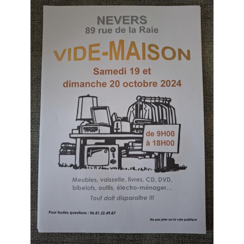Venez nombreux au vide maison organisé le 19 et 20 octobre de 9h à 18h.