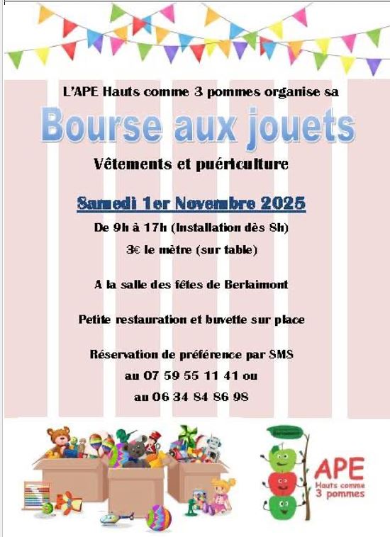 Bourse aux jouets, vêtements enfant et matériel de puériculture organisé par l'association de parents d'élèves de l'école maternelle Denoyelle de Berlaimont.