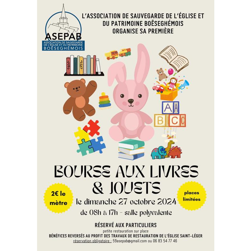 L'association de sauvegarde de l'église et du patrimoine boëseghémois organise sa première bourse aux livres & jouets.