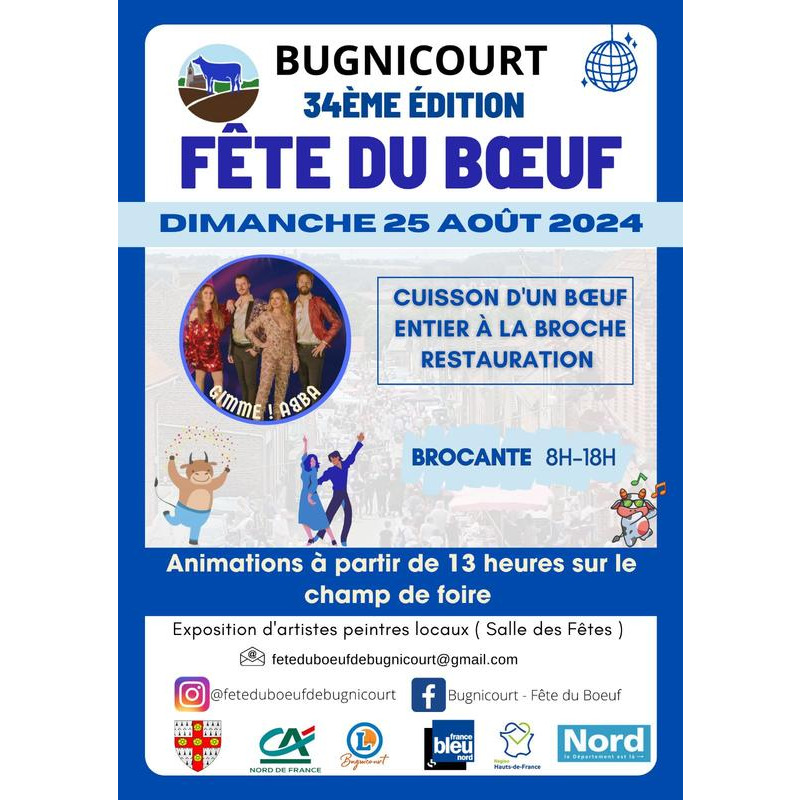 Cuisson d ' un boeuf à la broche animations gratuites sur scene de 13h à 19h00 grande brocante nombreuses animations expo peinture