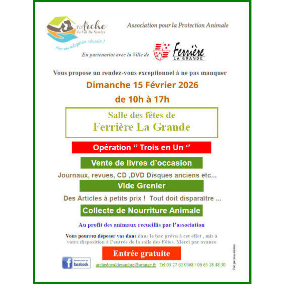 Collecte de nourriture animale : un bac sera prévu à cet effet à l'entrée de la salle.