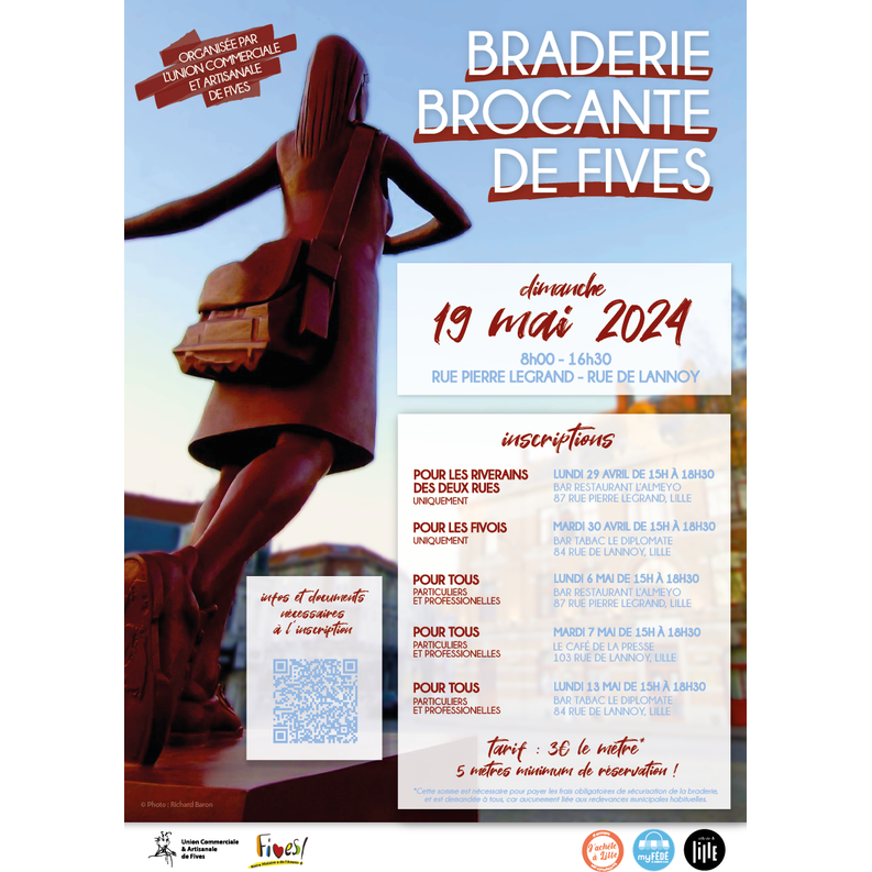 La braderie de fives est de retour le dimanche 19 mai 2024, rue pierre legrand et rue de lannoy, de 8h à 16h30.