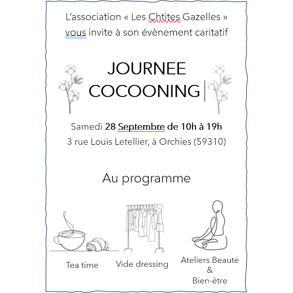 L'association les chtites gazelles organise une journée vide dressing & cocooning le 28/09 à orchies.