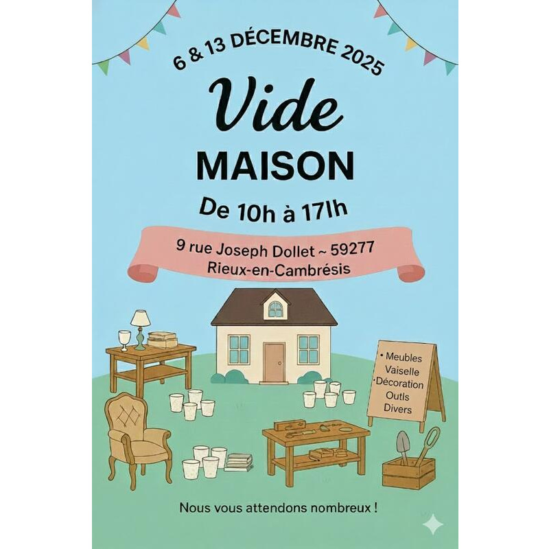 adresse : 9, rue joseph dollet, 59277 rieux-en-cambrésis dates : samedi 6 & samedi 13 décembre 2025 heures : de 10h00 à 17h00