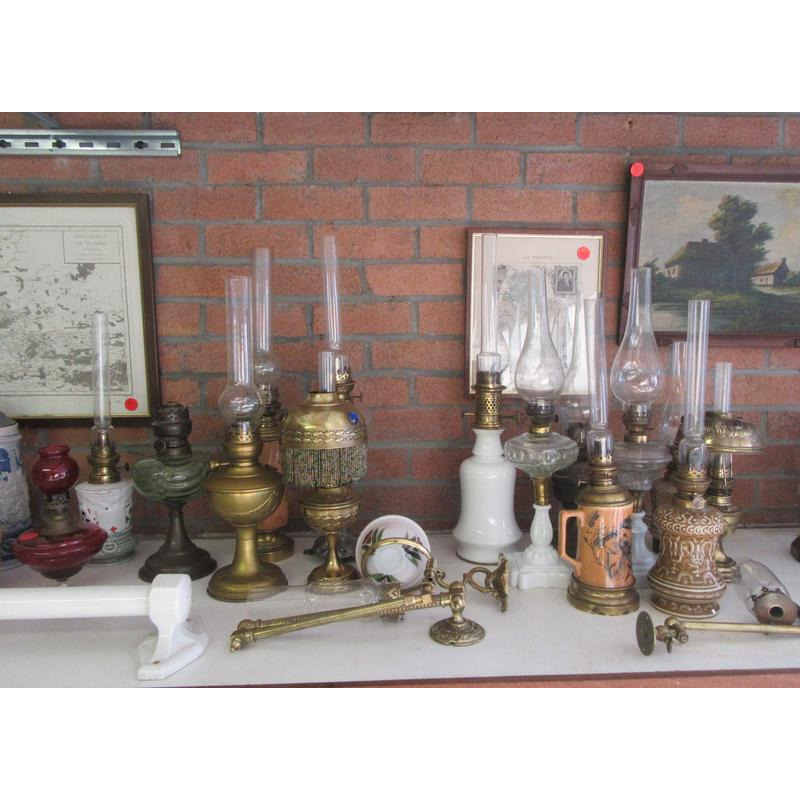 suite à héritage et allègement de collection de luminaires anciens : lampes à pétrole, huile, gaz, acétylène, mines… (plus d’une cinquantaine) , lustrerie art déco, films fixes ( dont 2 séries tintin) cartes postales, livres de collection, régionalisme, gravures, cartes anciennes, partitions, grès et faïences, tableaux, horloge de parquet, petits objets divers.