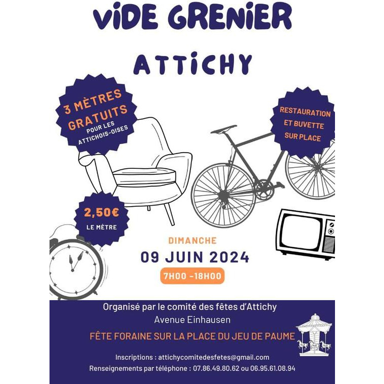 Vide grenier à attichy organisé par le comité des fêtes.