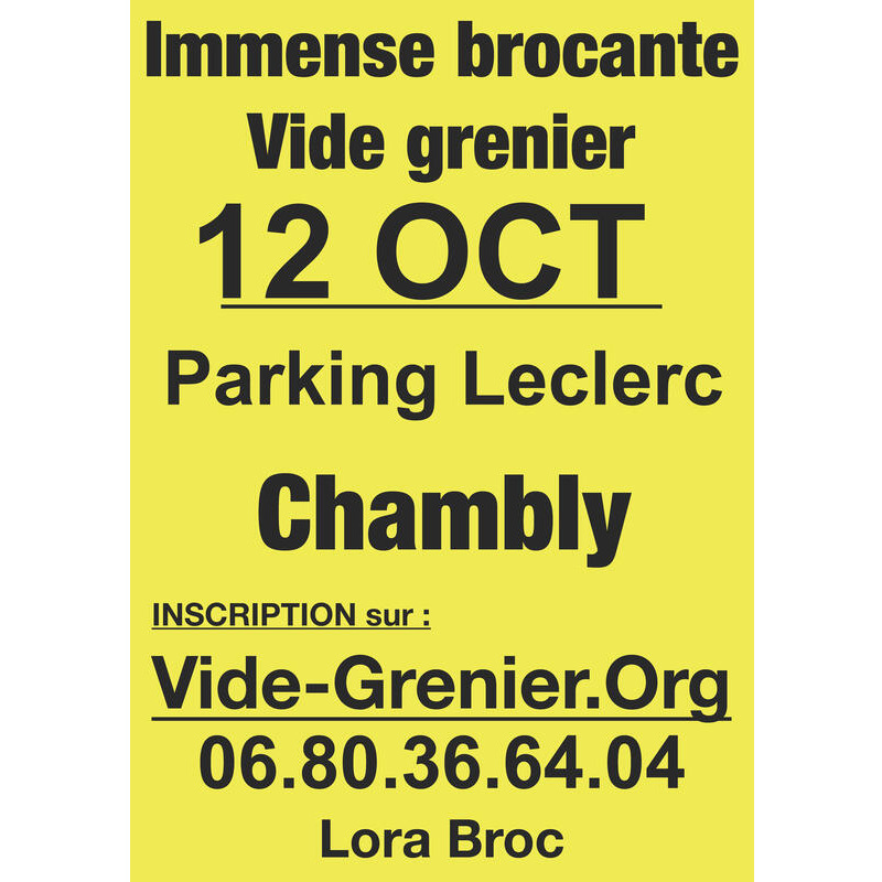 Pour chacune de nos brocantes/vide-greniers nous déployons une grande publicité sur toute l'ile de france et l'oise par internet et sur chambly, persan, beaumont-sur-oise, etc... Par affichage.