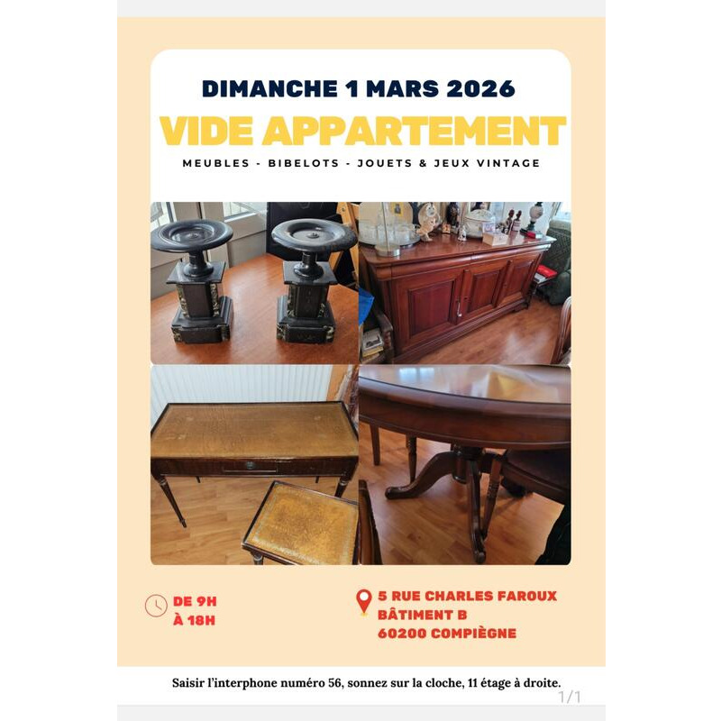 Vide appartement au 5 rue charles faroux bâtiment b à compiègne, le dimanche 1er mars 2026 de 9h à 18h