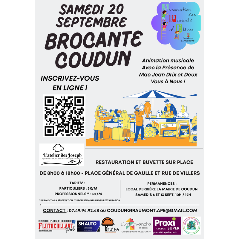 Seconde édition de la brocante de l'ape coudun-giraumont le samedi 20 septembre 2025.