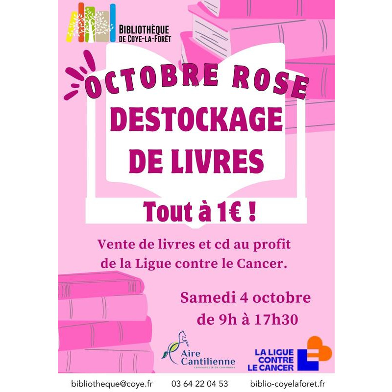 Vente de livres et cd au profit de la ligue contre le cancer, à l'occasion d'octobre rose. Tout à 1€ !