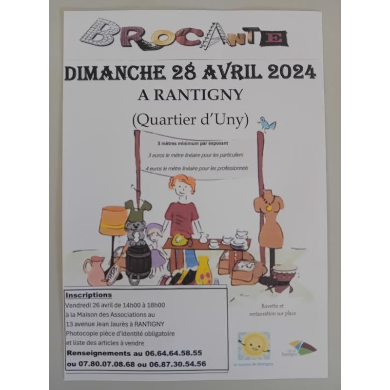 Brocante annuelle de rantigny - quartier d'uny. Brocante organisée par le sourire de rantigny. Restauration sur place possible.