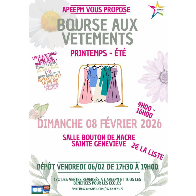 rendez-vous le dimanche 8 février 2026, de 9h à 16h, à la salle bouton de nacre à sainte-geneviève. Venez chiner vêtements et accessoires de saison pour toute la famille à petits prix, dans une ambiance conviviale