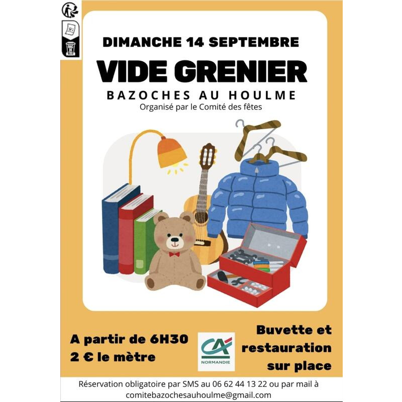 Le comité des fêtes de bazoches au houlme organise un vide grenier le dimanche 14 septembre.