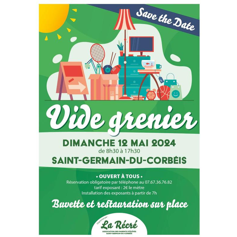 L'ape "la récré" organise un vide grenier en extérieur le dimanche 12 mai au parc de l'elan (parc derrière la bibliothèque de saint germain du corbeis).