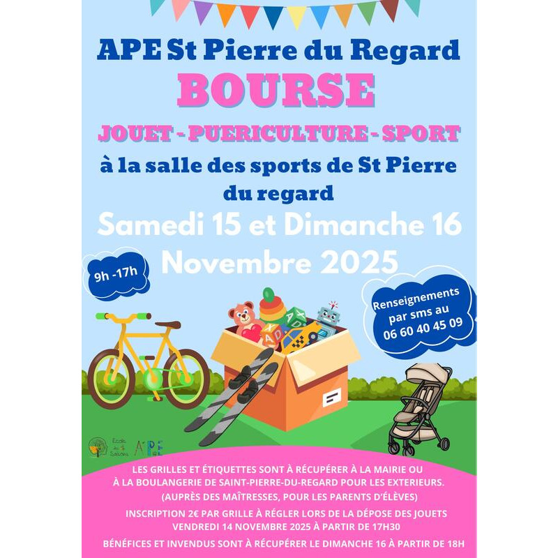 rdv le 15 et 16 novembre pour notre bourse aux jouets puériculture et sport ️ qui aura lieu au gymnase de saint pierre du regard.