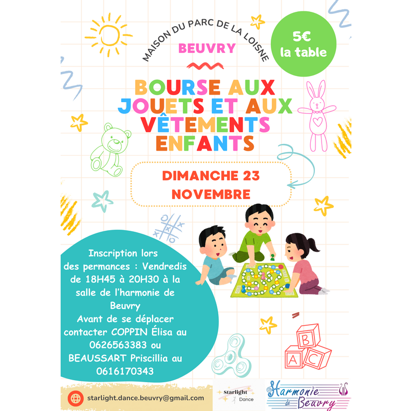 nos inscriptions sont ouvertes pour notre bourse aux jouets et aux vêtements enfants.