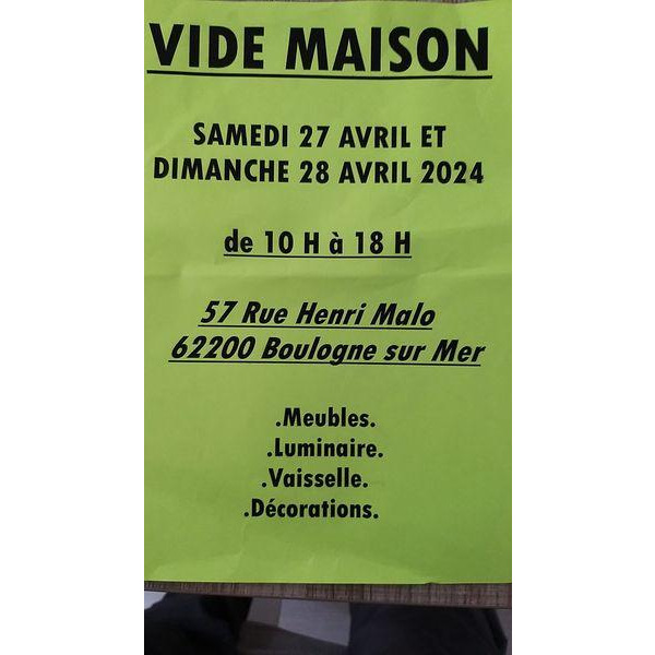 Vide maison vente, vaisselle, déco, meubles