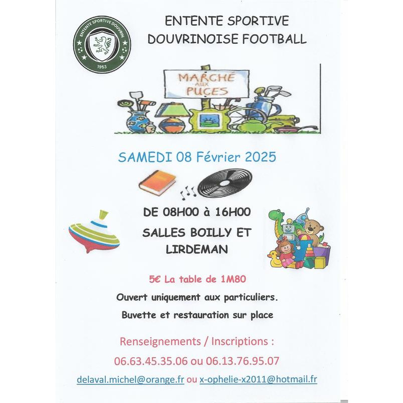 Marché aux puces dans deux salles buvette, restauration, sandwichs, croque monsieur, chips, bonbons.